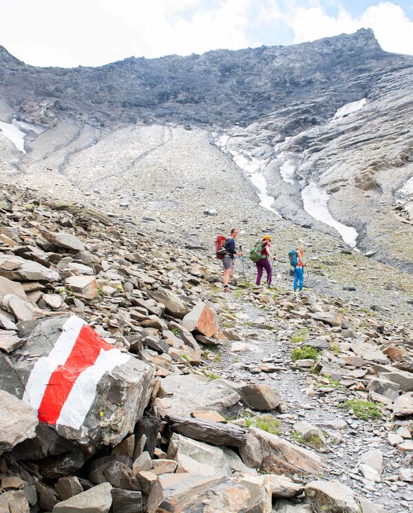 Die Übergänge Zeinenfurgglen und Ortstockfurggele sind gemäss Informationen unserer Etappenziele noch mit Schnee versehen, aber sie sind von Gästen bereits mit entsprechender Kenntnis passiert worden. Informiert euch stets im Voraus bei euren Etappenzielen – und reserviert diese frühzeitig.